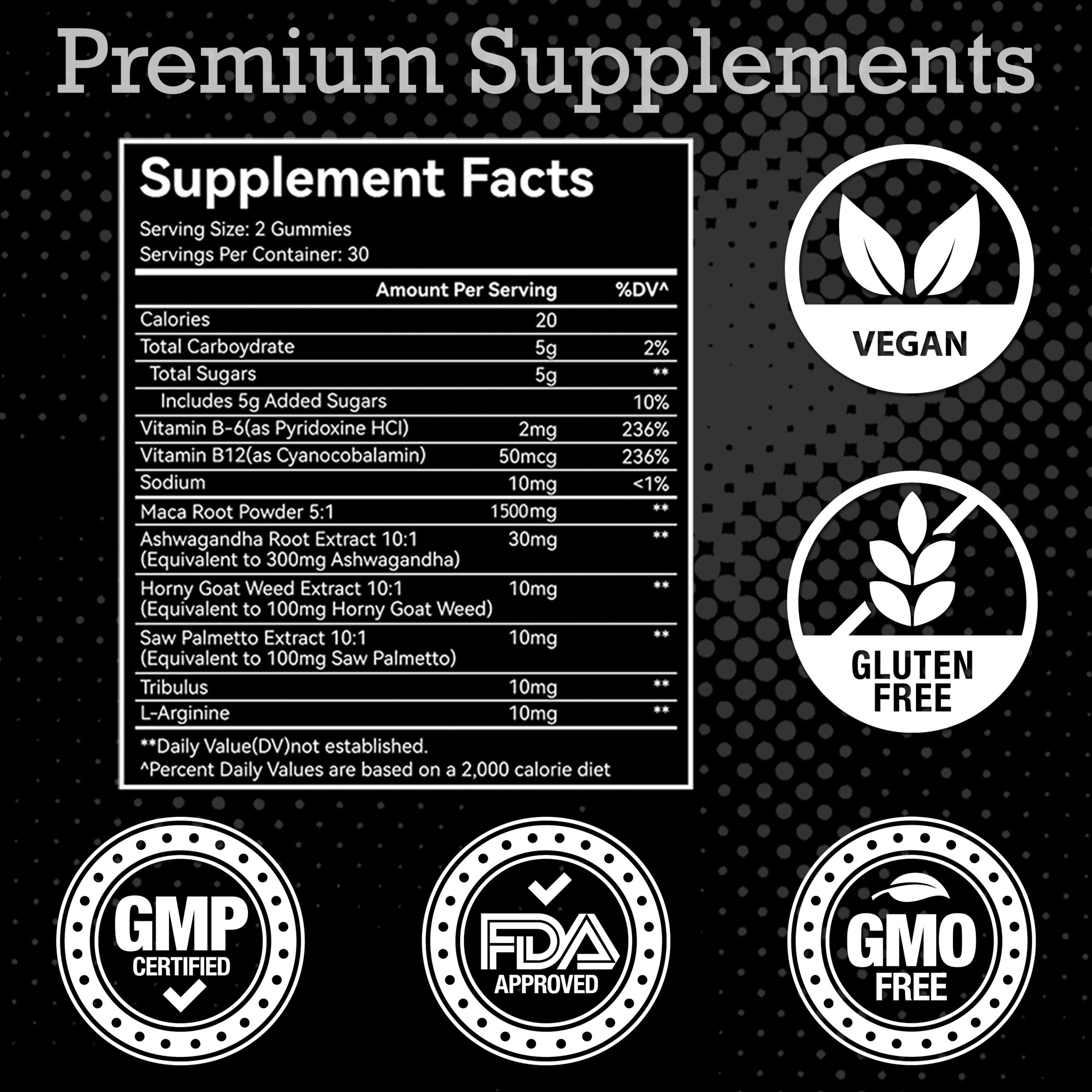 TRT UP Testosterone Booster Gummies deliver a comprehensive formula designed to support healthy testosterone levels, male vitality, and overall performance. Our maximum strength blend includes Ashwagandha, Saw Palmetto, Horny Goat Weed, Tribulus, and L-Arginine, ingredients backed by traditional use and modern research for men’s health. As men age, testosterone naturally declines, typically starting in the 30s and accelerating through the 40s, 50s, and beyond. This decline leads to low energy, reduced libido, decreased muscle mass, mental fog, and diminished drive. TRT UP provides a natural approach to supporting your body’s testosterone production within normal range, helping you maintain the vitality, strength, and performance you experienced in your prime years.
